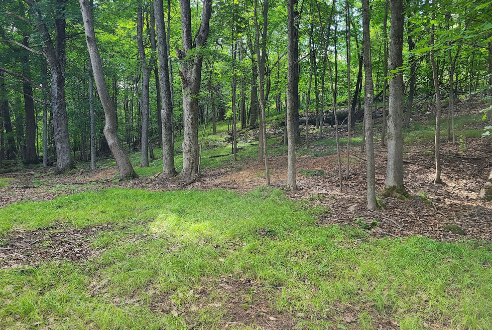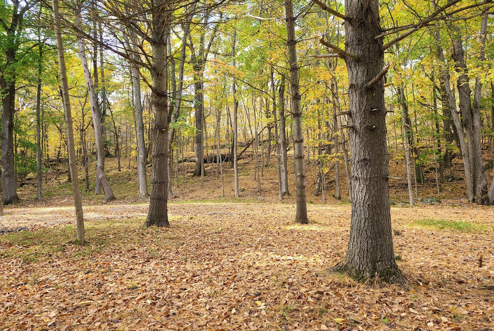 Pass through an old apple grove and across a small stream to arrive at an ideal building site framed in by a line of huge oak and maple trees that once defined the edge of a farm field. The lot extends northward to the top of a large hill. While exposed granite is present along the ridge, there is a good depth of overburden at the building site for a basement. Enjoy the privacy of about 580 feet of shared property line with the natural community park.
